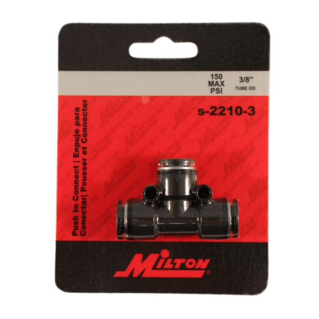 Tee union push to connect tube fittings offer easy installation of air lines; simply push tubing into fitting. No gluing or special tools required. These reusable push to connect fittings have a 1/2" OD and allow Maximum air flow and faster connection than standard compression fittings.