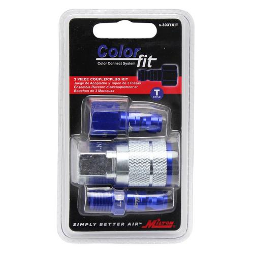 Milton, S-303TKIT, ColorFit T-Style Coupler and Plug Kit, 1/4" NPT, Blue (3-Piece)