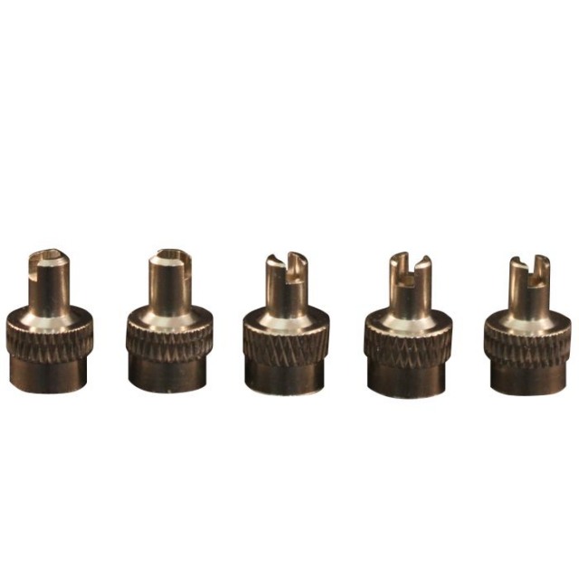 Nickel plated brass screwdriver type tire valve caps type TR VC 2 tire valve caps include a built in valve removal slot for easy installation and removal of valve core.