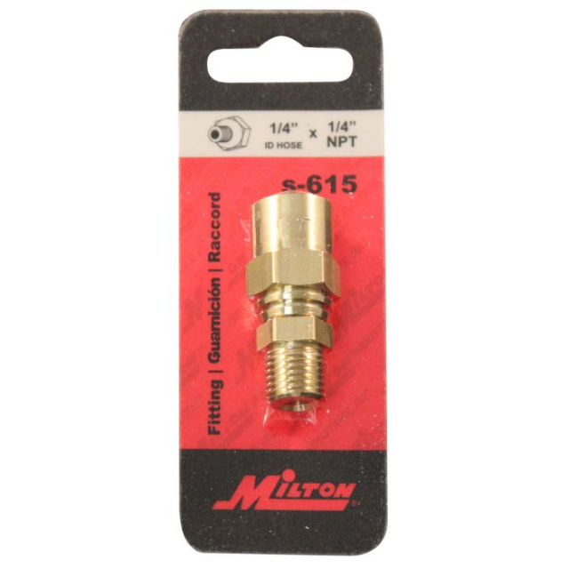 1/4" MNPT reusable hose end fittings can be used again and again. Can be used with 9/16" or 19/32" hose OD as well as 1/4" or 5/16" hose ID. Has a Maximum air pressure of 250 PSI.