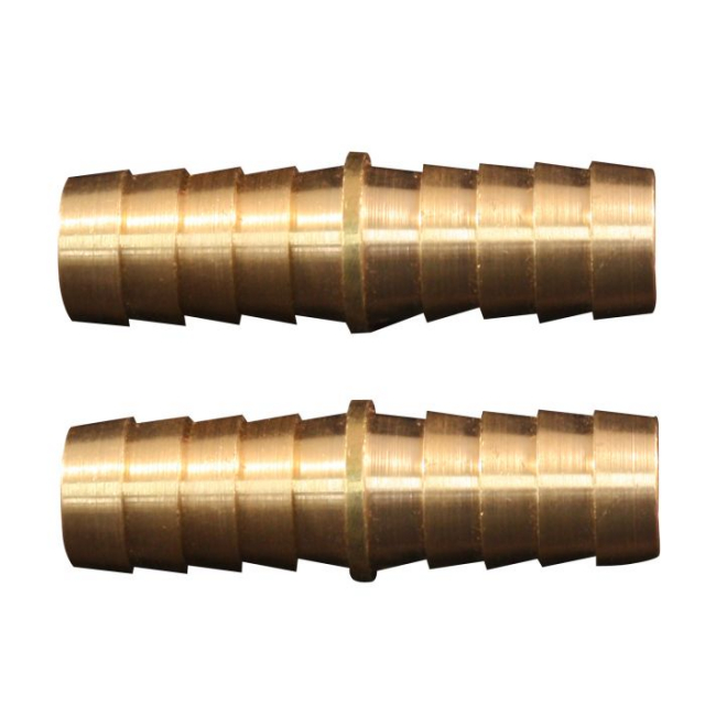 5/16" brass hose mender fittings are used to assemble hoses or replace old fittings on hoses. A hose clamp may also be used but is not as desirable. For best results and professional finished product the hose end should be secured with a crimped ferrule. Both ends have hose barbs.