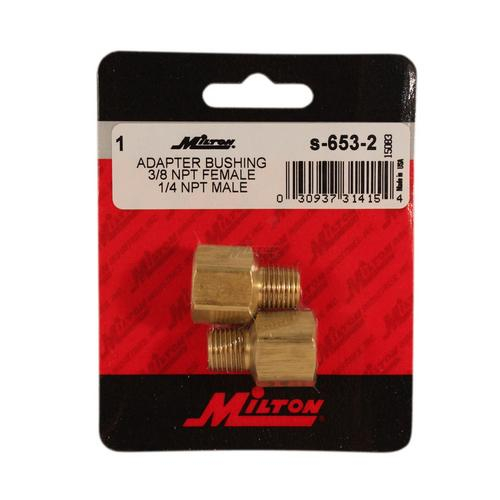 3/8" FNPT x 1/4" MNPT brass adapters are used to assemble new hoses or replace old fittings on hoses when reduction in pipe size is required. Brass is the best material to use for applications like this due to its resistance to rust and corrosion like other metals. Adapter bushing male one end and female on the other.
