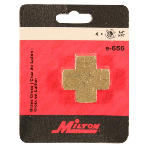 1/4" FNPT crosses may be used to split lines or add additional outlets. Brass crosses provides four connections with one part. Great for shops that run multiple tools off one compressor.