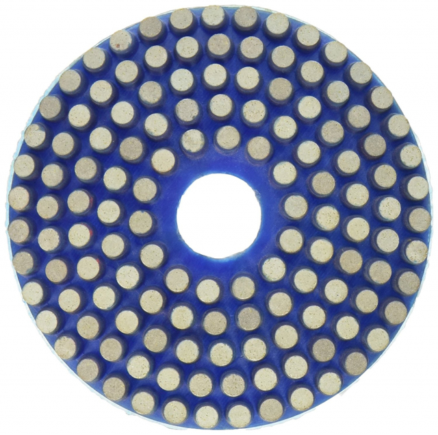 Flexible, 4" diameter Hook & Loop backed discs for light shaping, smoothing, and initial polishing of granite or marble. Max 3,700 RPM.