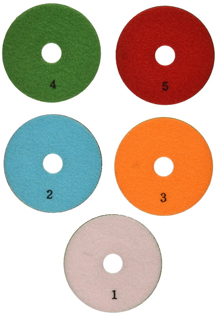 These wet pads are specially formulated to reduce polishing granite to a time saving 5 step process. Maximum speed: 4000 RPM.