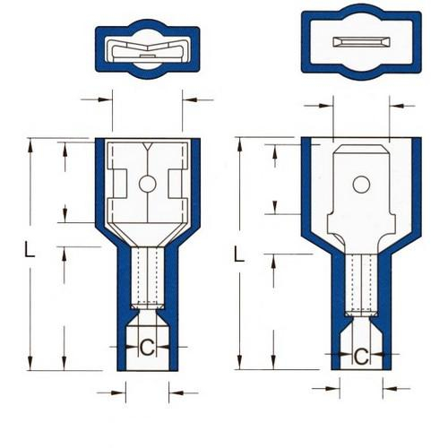 Morris, 10416, 16-14 AWG 0.250mm x 0.032mm Blue Male Nylon Fully Insulated Disconnect