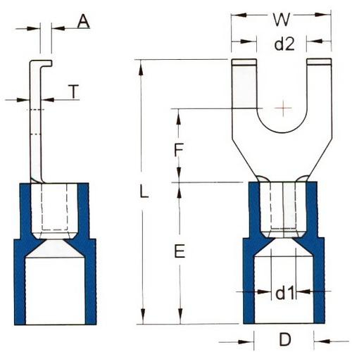 Morris, 11810, 16-14 AWG #6 Blue Nylon Insulated Flange Fork/Spade Terminal