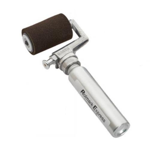 The Rolmark Express offers a quick, easy and convenient method applying stencil ink on all types of surfaces, both porous and non-porous. The Rolmark Express utilizes the same type of ll metal construction that the standart Marsh Fountain Rollers have been using for decades. The all metal, disposable ink catridge contains a full4 ounces ofink and becomes the strong, durable handle once it is screwed on to the fountain roller head assembly.