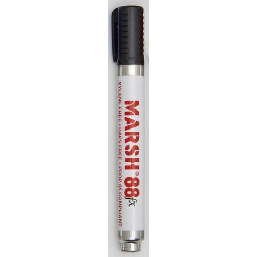 Marsh Shipping Supply Co. alcohol based FX pigmented valve activated markers are recommended for heavy duty outdoor use, marking permanent, weatherproof, fast drying opaque markers. Free of xylene. HAPS free (hazardous air pollutants). Prop 65 compliant. Available in black color. Made in USA.