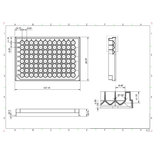 MTC Bio, D3096-07S, OptiWell™ Deep Well Plate, 96 Round Well, 0.45mL, 14.50mm height, V-bottm, Black Alphanumeric Printing, PP, Sterile, 10 bags of 10 pieces, 100 / CS