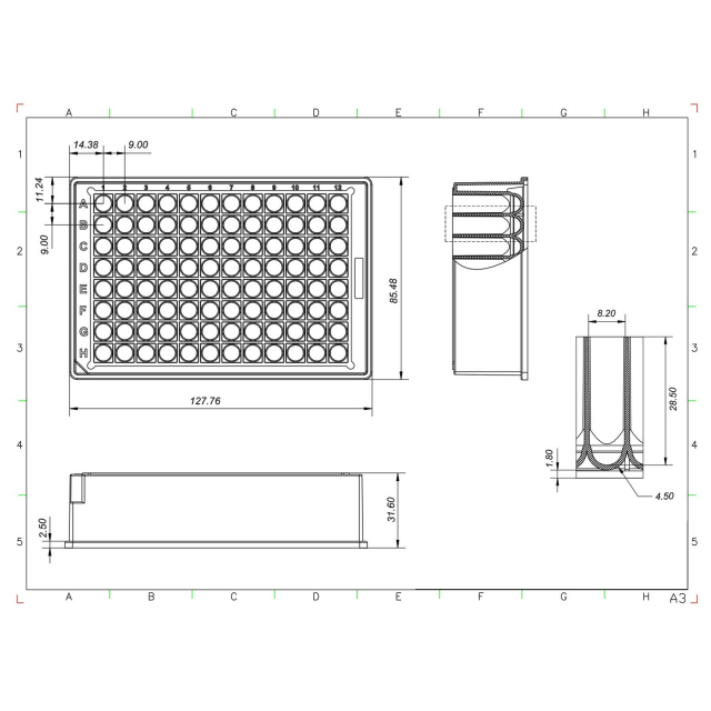 MTC Bio, D3096-31S, OptiWell™ Deep Well Plate, 96 Square Well, 1.6mL, 31.6mm height, U-bottom, Black Alphanumeric Printing, PP, Sterile, 10 bags of 5 pieces, 50 / CS