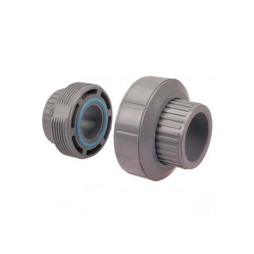 The light grey Corzan® CPVC socket union features female socket connections. This fitting has an EPDM ethylene propylene seal which has good abrasion and tear resistance, plus excellent chemical resistance, but not recommended for applications involving petroleum oils or most strong acids. Corzan® CPVC Schedule 80 thermoplastics demonstrate excellent mechanical strength over broad temperature range, outstanding underground performance and superior hydraulics. Chemtrol Corzan® CPVC fittings are lightweight, easy to install, maintenance-free and will not rust, scale, pit or corrode.