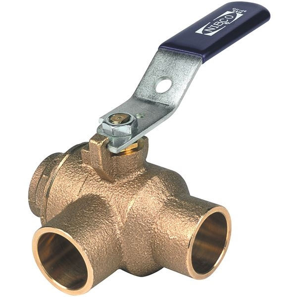 NIBCO NJ83L16 S5857066W3 1/2" 2-Piece Bronze Ball Valve 3-Way