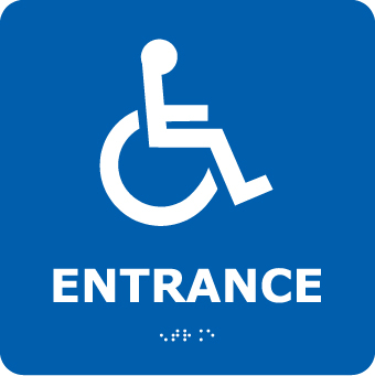 NMC, ADA17WBL, Ada Braille Sign "Entrance (w/Handicap Symbol)"/ Blue