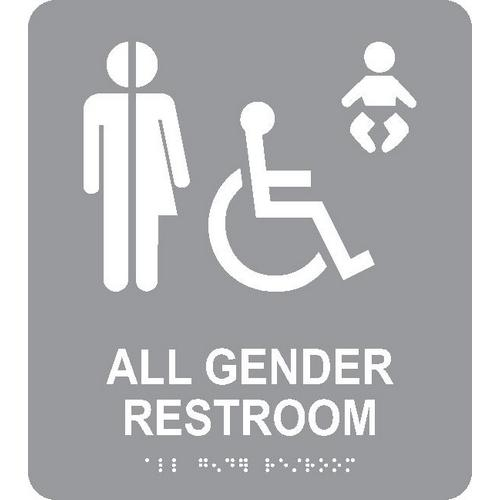 NMC, ADA23GR, All Gender Restroom - Sign, Braille, Grey, 9x8"