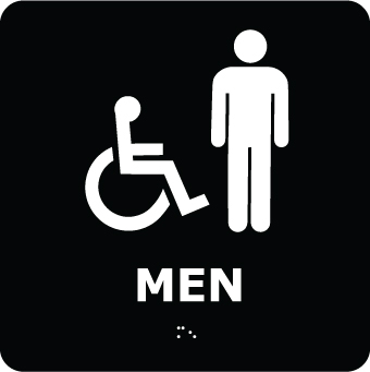 NMC, ADA4WBK, Ada Braille Sign "Men (w/Handicap Symbol)"/ Black