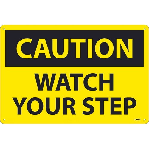 NMC, C203AG, Caution Watch Your Step Sign, 12" x 18"