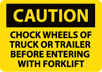 Caution, Chock Wheels Or Truck Or Trailer Before Entering With Forklift, 10X14, Ps Vinyl