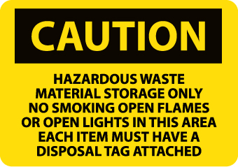 Caution, Hazardous Waste Material Storage Only No Smoking Open Flames Or Open Lights In This Area Each Item Must Have A Disposal Tag Attached, 10X14, .040 Alum
