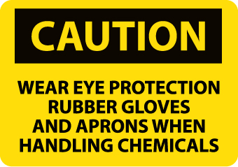 Caution, Wear Eye Protection Rubber Gloves And Aprons When Handling Chemicals, 10X14, .040 Alum