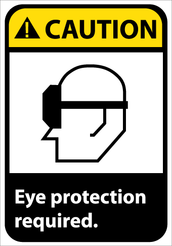 NMC, CGA10R, 10"x 7"ANSI Sign w/Legend: "Caution Eye Protection Required (w/Graphic)"