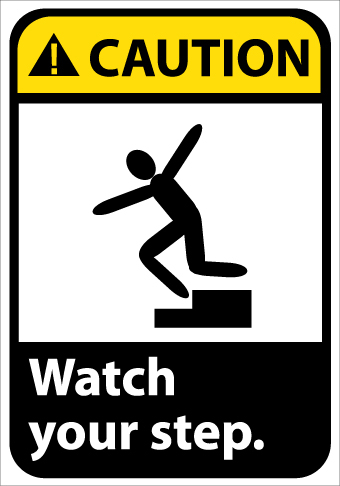 NMC, CGA12RB, 14"x 10"ANSI Sign w/Legend: "Caution Watch Your Step (w/Graphic)"
