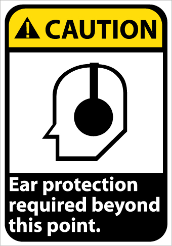 NMC, CGA23PB, 14"x 10"ANSI Sign w/Legend: "Caution Ear Protection Required Beyond This Point"