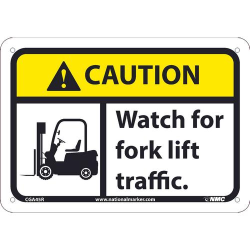 NMC, CGA45R, 45R "Caution Watch for Fork Lift Traffic" Traffic sign, Rigid Plastic