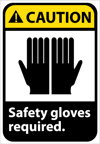 NMC, CGA8RB, 14"x 10"ANSI Sign w/Legend: "Caution Safety Gloves Required (w/Graphic)"