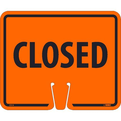 NMC, CS14, Safety Cone "Closed" - Sign, 10.375" x 12.625", Plastic