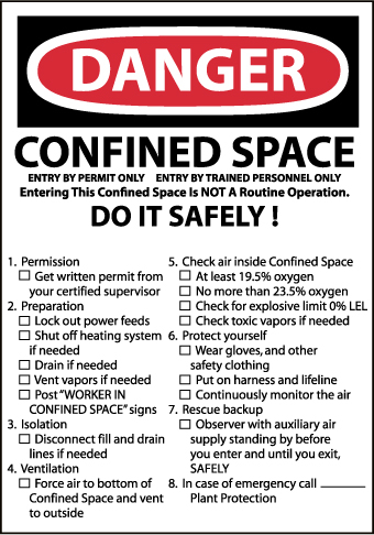 Danger, Confined Space Do It Safely, 10X14, Ps Vinyl