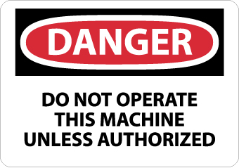 Danger, Do Not Operate This Machine Unless Authorized, 10X14, Ps Vinyl