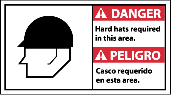 Danger, Hard Hats Required In This Area (Bilingual W/Graphic), 10X18, Ps Vinyl