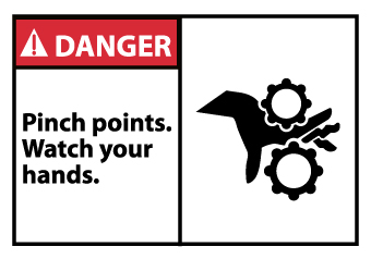 NMC, DGA19AP, 3"x 5"ANSI Sign w/Legend: "Danger - Pinch Points Watch Your Hands (Graphic)"