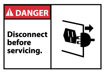 NMC, DGA23AP, 3"x 5"ANSI Sign w/Legend: "Danger - Disconnect Before Servicing (Graphic)"