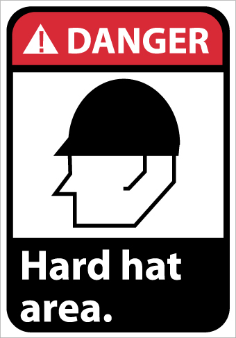 NMC, DGA2R, 10"x 7"ANSI Sign w/Legend: "Danger - Hard Hat Area (w/Graphic)"