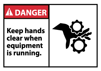 NMC, DGA47AP, 3"x 5"ANSI Sign w/Legend: "Danger - Keep Hands Clear When Equipment Is Running"