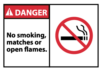 NMC, DGA6AP, 3"x 5"ANSI Sign w/Legend: "Danger - No Smoking Matches Or Open Flames (Graphic)"