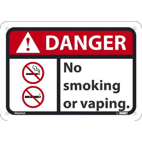NMC, DGA94A, Danger No Smoking Or Vaping - Sign, 7" x 10", 0.040, Aluminum