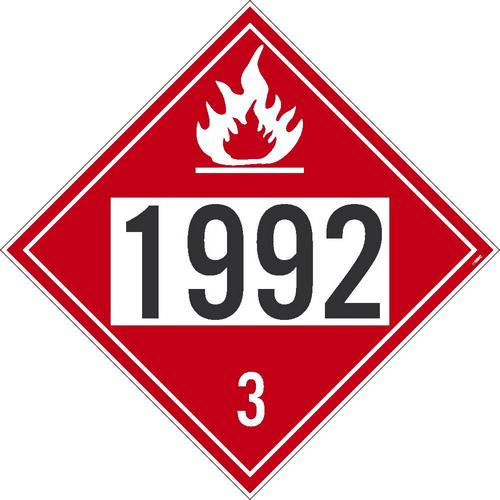 NMC, DL183P100, DOT Placard Sign "Flammable 1992 3", 10" x 10", PS Vinyl, 100 pcs