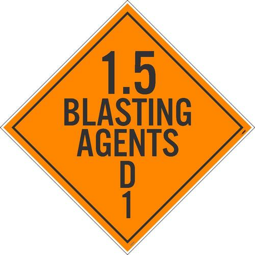 Avoid accidents and keep workers safe by posting our 1.5 Blasting Agents D1 DOT Placard sign on designated vehicles.