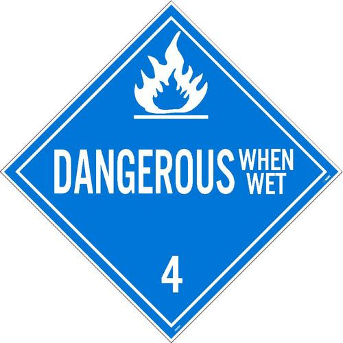 Display our Dangerous When Wet Class 4 Placard sign, which complies with DOT-HM 181 requirements, to protect and alert passersby of the potential hazard.