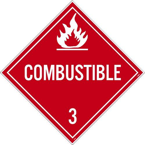NMC, DL9PR, DOT Placard Sign, "Combustible 3", 10" x 10", PS Vinyl