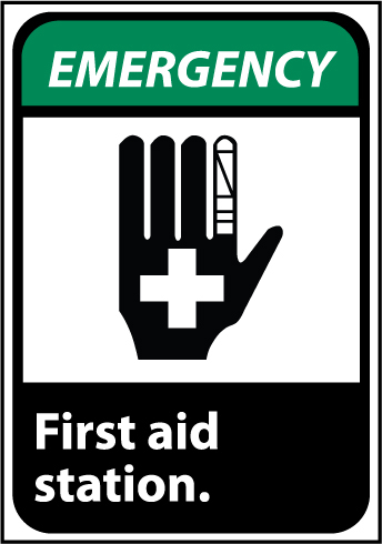 NMC, EGA3RB, 14"x 10"ANSI Sign w/Legend: "EMERGENCY FIRST AID STATION (w/GRAPHIC)"