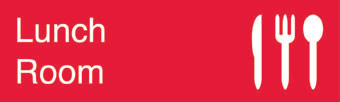 NMC, EN13R, 3" x 10" Engraved Identification Sign - "Lunch Room (Graphic)", Red