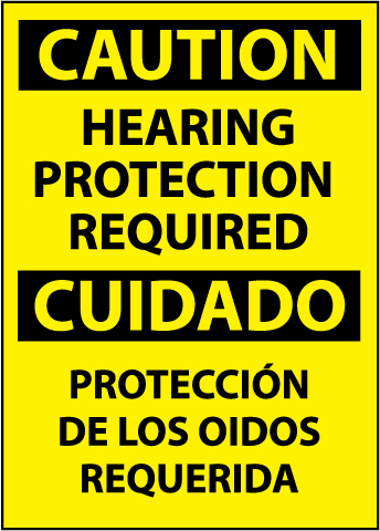 CAUTION, HEARING PROTECTION REQUIRED BILINGUAL, 14X10, RIGID PLASTIC