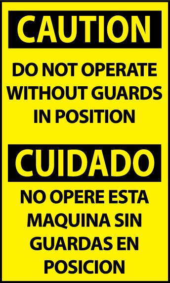 CAUTION, DO NOT OPERATE WITHOUT GUARDS IN POSITION BILINGUAL, 5X3, PS VINYL
