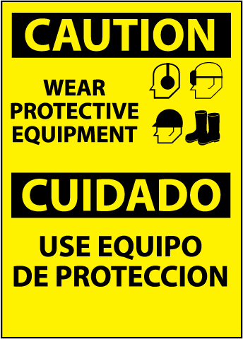 CAUTION, WEAR PROTECTIVE EQUIPMENT BILINGUAL, GRAPHIC, 14X10, .040 ALUM