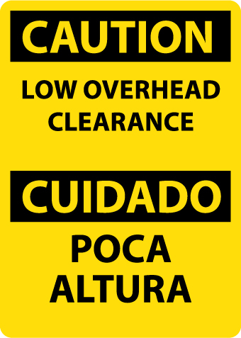 CAUTION, LOW OVERHEAD CLEARANCE, BILINGUAL, 14X10, RIGID PLASTIC
