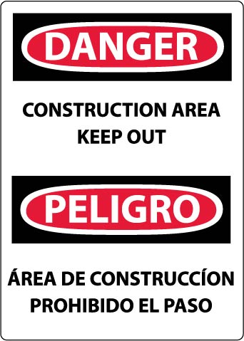 Danger, Construction Area Keep Out (Bilingual), 20X14, Rigid Plastic